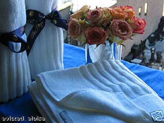 The bathmat will arrive tied with an authentic Plaza Hotel ribbon. (A blue ribbon embossed with both the logo and "The Plaza" in gold!) It is a beautiful presentation and would make a spectacular gift! US $40.00 + shipping | |||||
