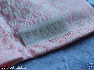 The label on the sheet says: FRETTE EXPRESSLY MADE FOR The Plaza The other side of the label says: MADE IN ITALY 100% COTTON (International washing instruction symbols are on this line.) The sheets are white with no logo or other design. The sheet is 270cm x 290 cm (106 inches by 114 inches) a generous Frette-style king size sheet...in fact, it is big enough for a California King! (note: California king sheets are usually 102" x 110" - if you're unsure please measure your own bed or sheets before ordering.) US $75.00 + shipping | |||||